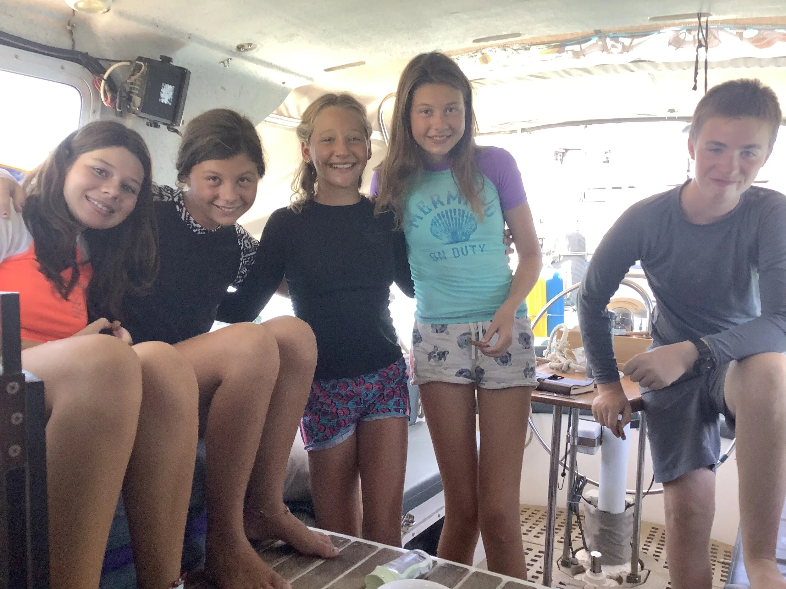 SV Kyrie joined us a few weeks ago after quarantining. With their 3 kids the same age as 3 of ours, they have added a new dimension to our group! Their 2 youngest girls are the same age as Bronwyn and Loch, so for the first time, all of our kids are paired up with friends. Lochlan has never had a little friend to spend hours playing Lego, Shopkins, and Calico Critters with and is just LOVING his "bestie" Megan. I took them swimming the other day and, with a healthy dose of competition between them, they both fully submerged their heads and bodies for the first time, of their own volition! That's no easy task with lifejackets, let me tell you! SV Kyrie is leaving us to plug in their air conditioner in at the dock in San Carlos, so they will be greatly missed.